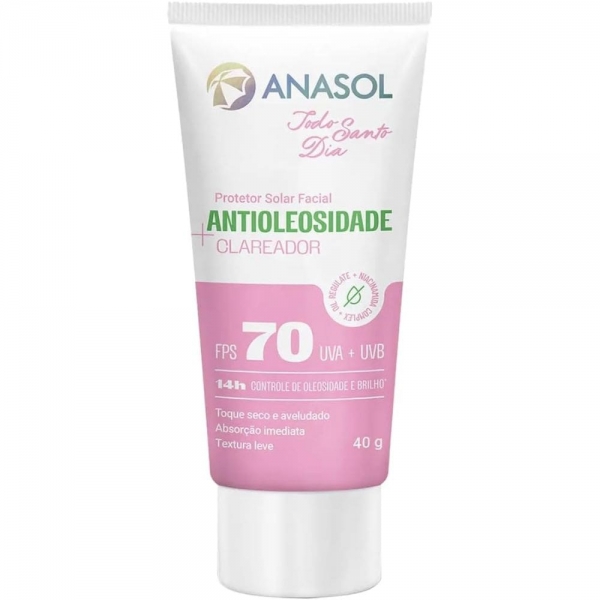 ANASOL PROT. SOLAR FACIAL TSD-ANTIOLEOSIDADE CLAREADOR FPS 70 - 40 G