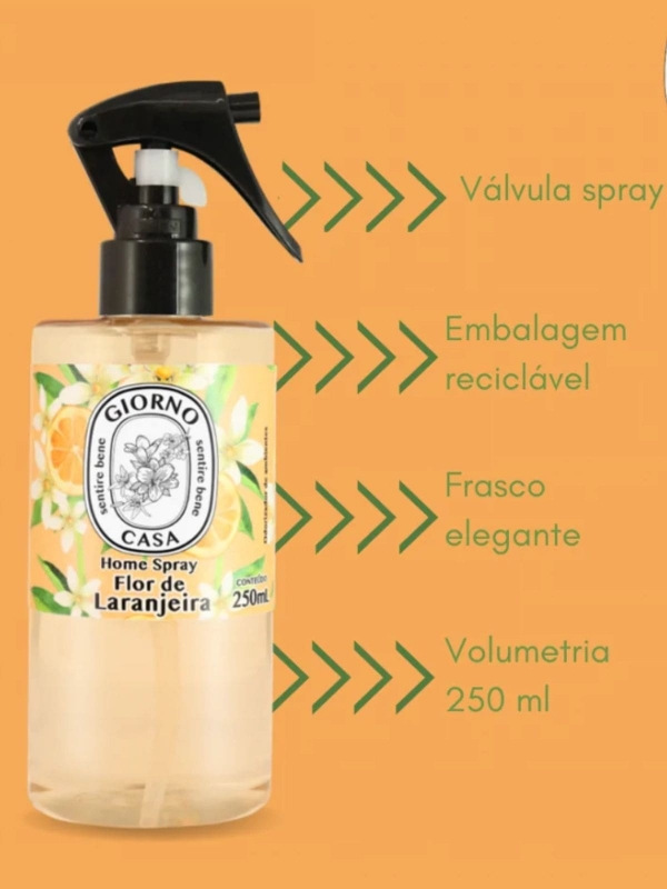 Informações do produto: Aromatizador ambiente Giorno Casa 250ml Spray Perfumado - FLOR DE LARANJEIRA