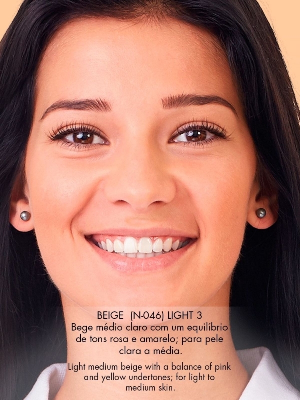 A fórmula é aprimorada com ingredientes ópticos reflexivos de luz para dar luminosidade natural à pele e efeito fiel à câmera.