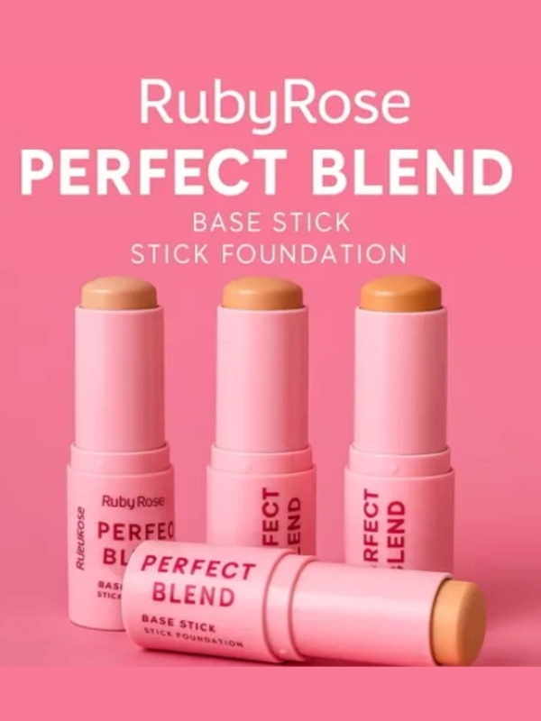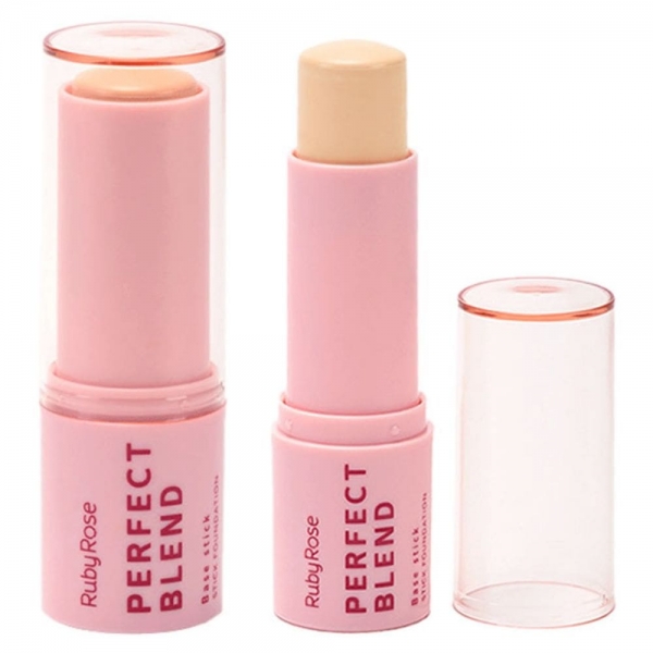 A Base Stick Perfect Blend Ruby Rose é ideal para quem busca praticidade e eficiência. Com formato em bastão, oferece fácil aplicação e cobertura uniforme, com acabamento matte e fórmula enriquecida com Vitamina E e Ácido Hialurônico, proporcionando hidratação e aspecto natural.