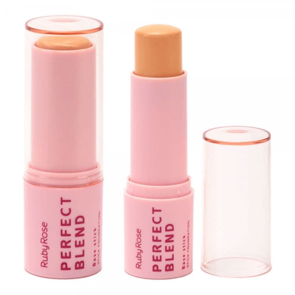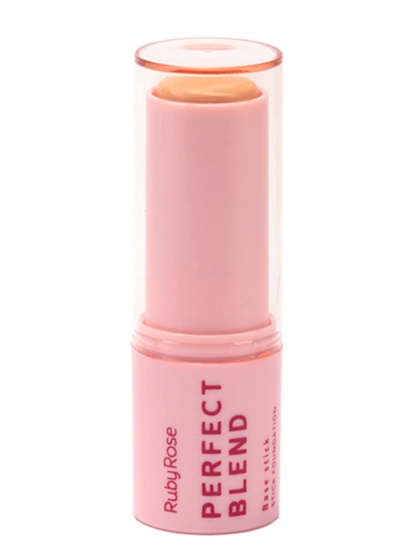 A Base Stick Perfect Blend Ruby Rose é ideal para quem busca praticidade e eficiência. Com formato em bastão, oferece fácil aplicação e cobertura uniforme, com acabamento matte e fórmula enriquecida com Vitamina E e Ácido Hialurônico, proporcionando hidratação e aspecto natural.