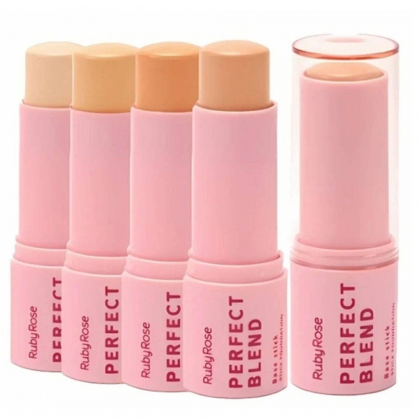 A Base Stick Perfect Blend Ruby Rose é ideal para quem busca praticidade e eficiência. Com formato em bastão, oferece fácil aplicação e cobertura uniforme, com acabamento matte e fórmula enriquecida com Vitamina E e Ácido Hialurônico, proporcionando hidratação e aspecto natural.