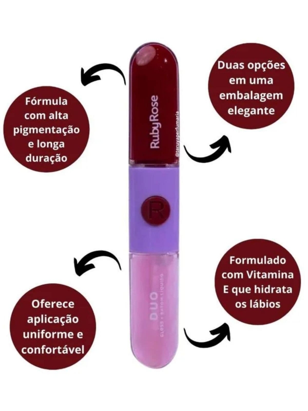 Informações do produto: Batom E Gloss Liquido Duo Rubyrose - LD07