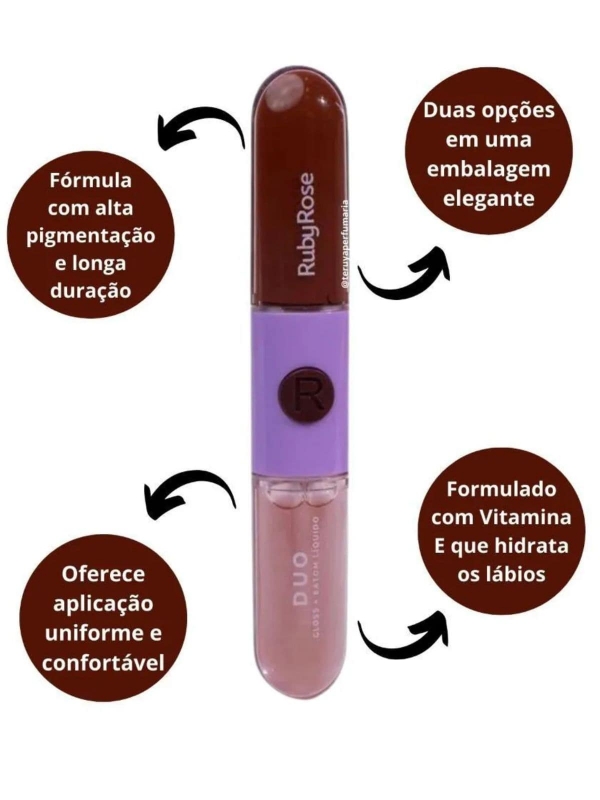 Informações do produto: Batom E Gloss Liquido Duo Rubyrose - LD10