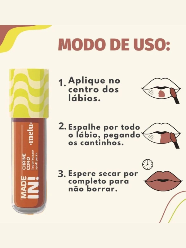 Informações do produto: Batom líquido Charme do Rio Made In Melu