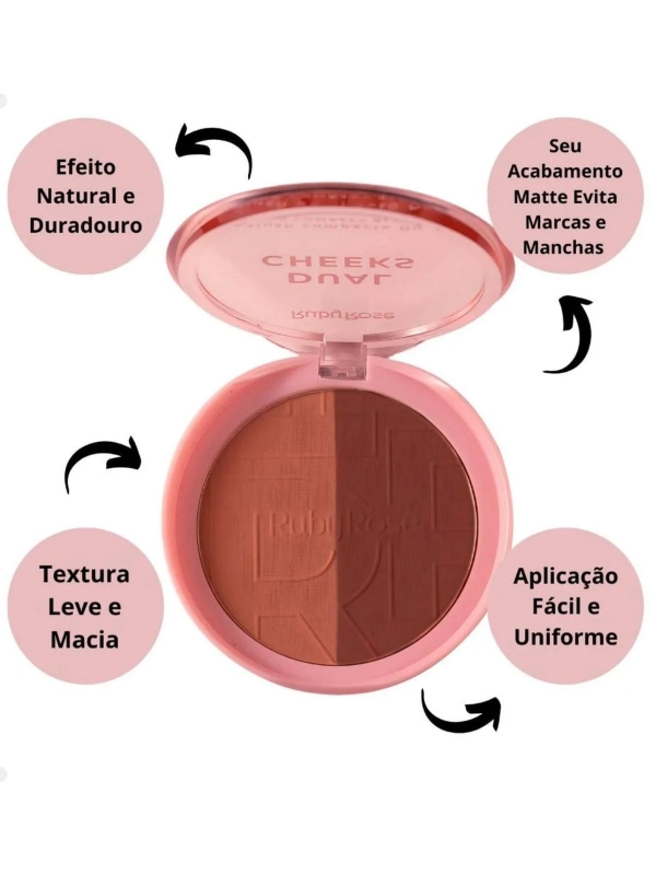 Informações do produto: Blush Compacto Dual Cheeks Champagne e Peach Ruby Rose - Ivory e Bronze
