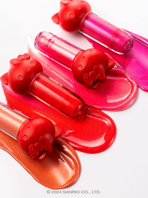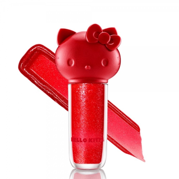 Bruna Tavares + Hello Kitty Lip Oil possui uma embalagem com design exclusivo, trazendo o molde da tampa personalizado com o rosto da Hello Kitty em relevo e em vermelho, uma das cores da personagem.