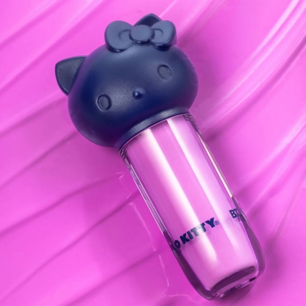 Bruna Tavares + Hello Kitty Liquid Blush possui uma embalagem com design exclusivo, trazendo o molde da tampa personalizado com o rosto da Hello Kitty em relevo e em azul marinho, uma das cores de BT.