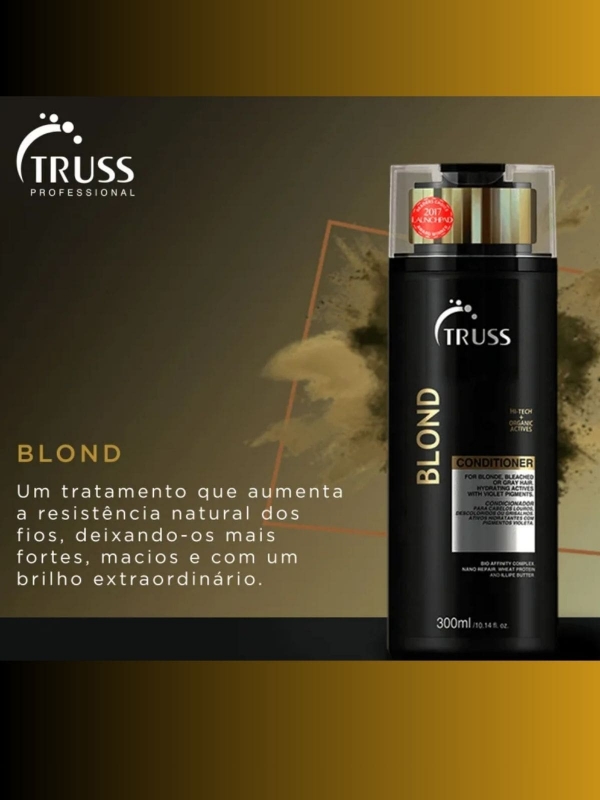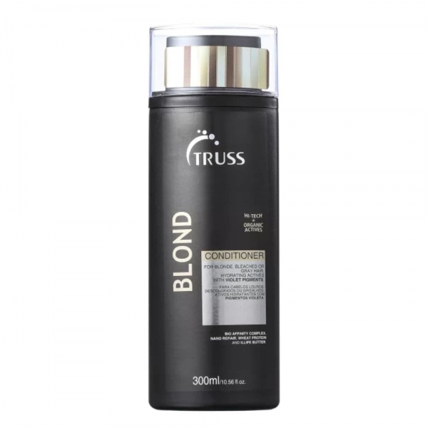 O Condicionador BLOND TRUSS cuida do seu tom com seu Blend de Pigmentos Violeta, que neutraliza os tons alaranjados causados pela oxidação do fio com exposição ao sol, uso de fontes de calor e demais agressões do dia a dia.
