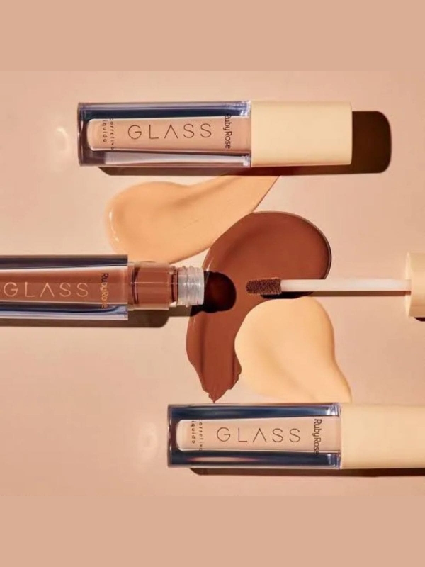 Corretivo líquido Ruby Rose Glass com alta cobertura e acabamento luminoso.