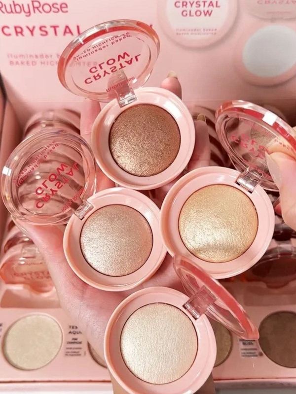 O Iluminador Baked Ruby Rose Crystal Glow proporciona um glow radiante com efeito espelhado, ideal para realçar os pontos altos do rosto e corpo. Sua fórmula baked (assada) garante alta pigmentação, durabilidade prolongada e textura suave, que se funde perfeitamente à pele.