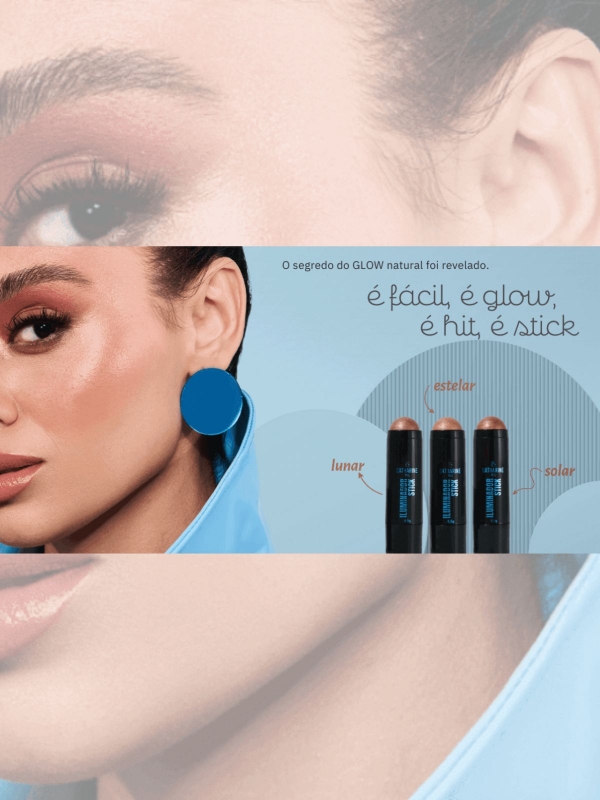 Com a missão de trazer luminosidade, brilho e viço para a make, o Iluminador Stick da Catharine Hill vem em bastão com textura cremosa, disponível em 3 cores: Lunar (fundo dourado), Estelar (fundo rosado) e Solar (acobreado), indicado para todos os tipos de pele.