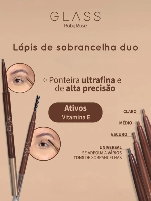 O Lápis de Sobrancelhas Duo Glass Ruby Rose é a escolha ideal para quem busca sobrancelhas bem definidas, naturais e com acabamento profissional.
