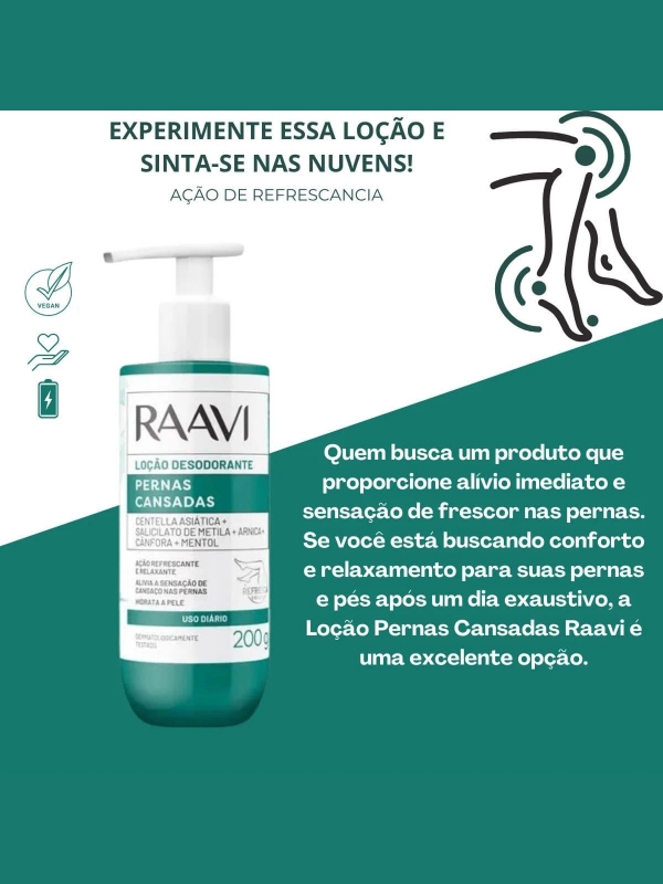 Informações do produto: Loção Desodorante Raavi Pernas Cansadas 200ml
