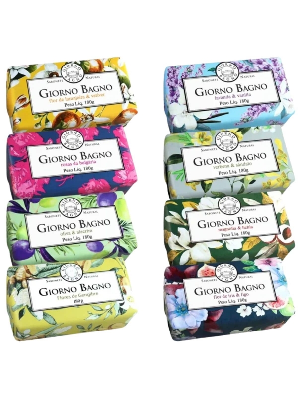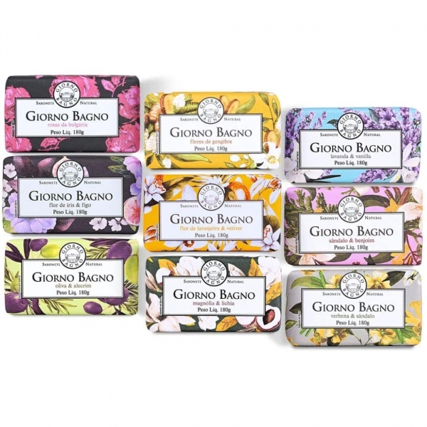 Giorno Bagno é um sabonete 100% vegetal, inspirado nos sabonetes italianos e cuidadosamente embrulhado à mão.