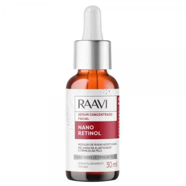 Revitalize a pele com o Sérum Concentrado Nano Retinol Raavi. Alta performance, especialmente desenvolvido para agir profundamente na pele, auxiliando na redução de rugas acentuadas e melhorando significativamente a firmeza e elasticidade da pele.