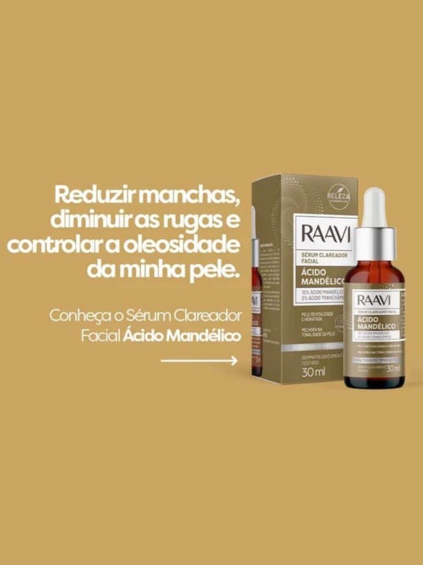 Informações do produto: Sérum Facial Clareador Raavi Ácido Mandélico 30ml