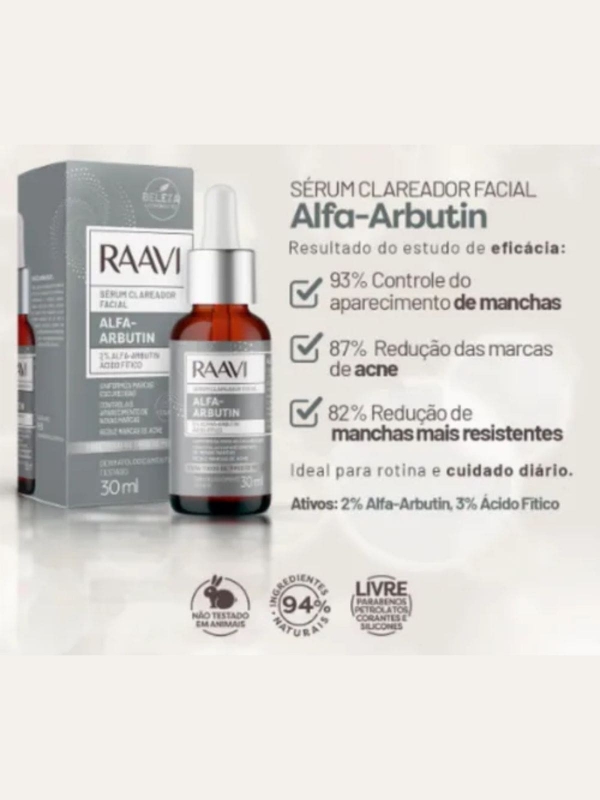 Informações do produto: Sérum Facial Clareador Raavi Alpha Arbutin 30ml