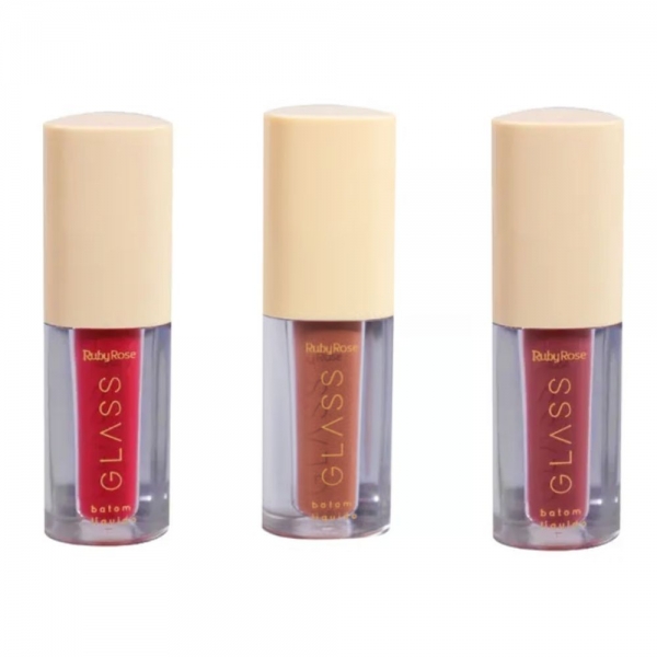 Trio Batom Liquido Velvety Glass BG04, BG05 e BG06 Rubyrose